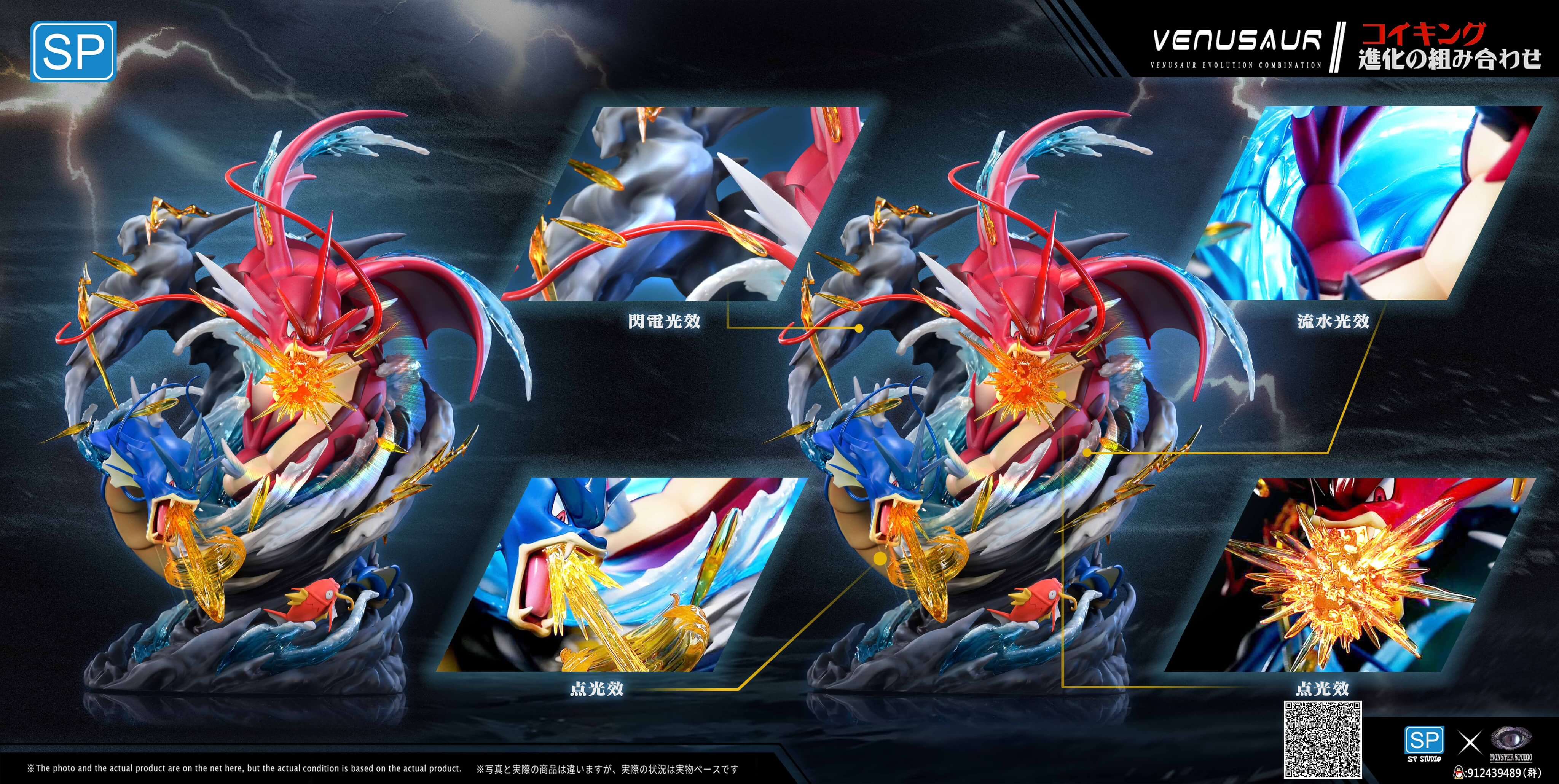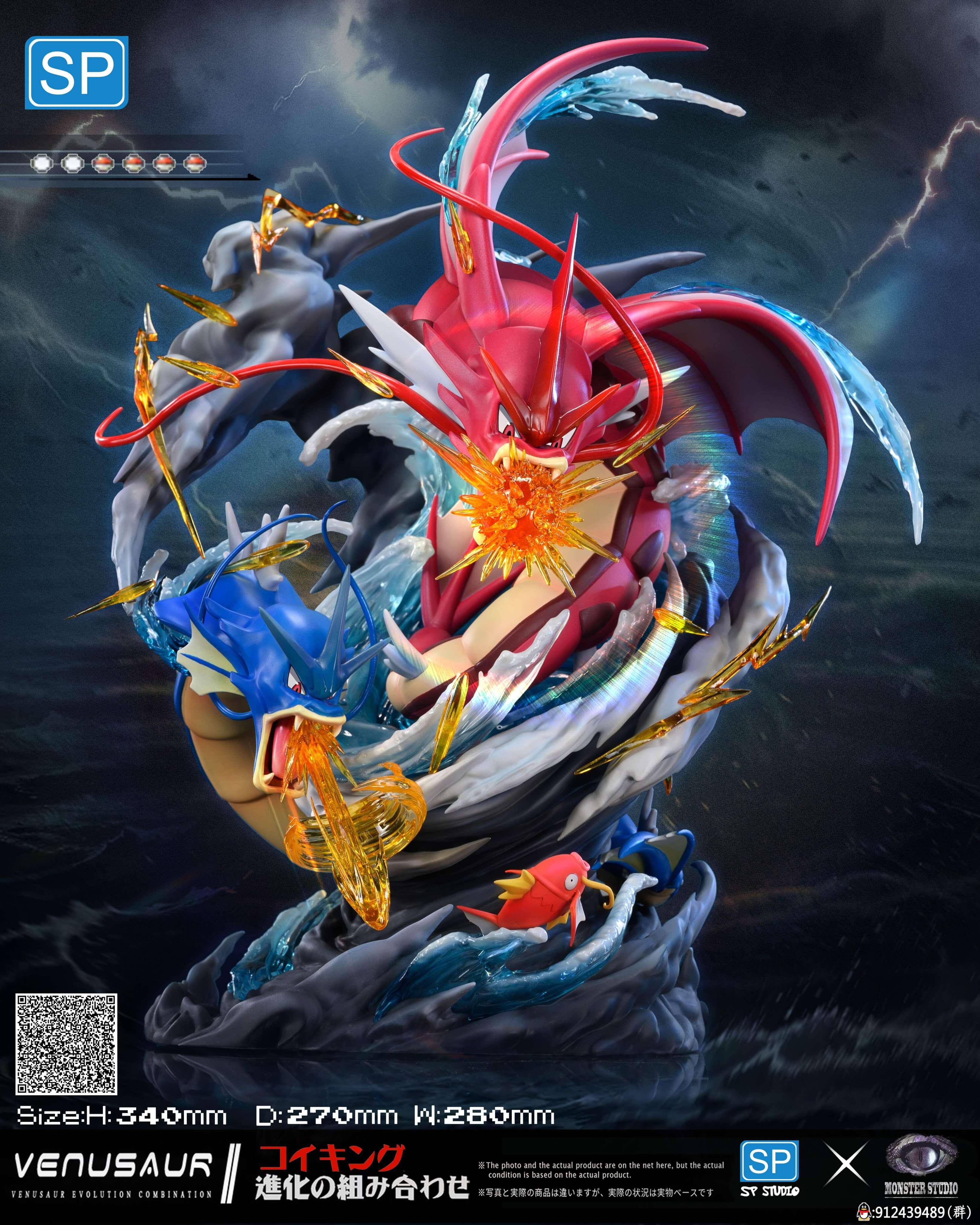 SP Studio - Pokemon 寶可夢 暴鯉龍進化組 GK雕像 2024/06/03 15:05 GK情報局 1009 暴鯉龍是任天堂和Game Freak所特許經營的《精靈寶可夢》系列裡的虛構生物「寶可夢」之一,它由杉森建設計,最初登場於《寶可夢 紅》和《寶可夢 綠》之中,並在後續多款衍生作品,以及卡片、模型等產品中登場,在動畫中,它由石塚運昇配音。 抽寶可夢一番賞 工作室:SP聯名怪獸(sp是一家專業生產雕像的公司)作品:進化組系列 暴鯉龍進化組材 質:進口樹脂 + PU尺 寸:高34cm 長28cm 寬27cm 抽寶可夢一番賞
